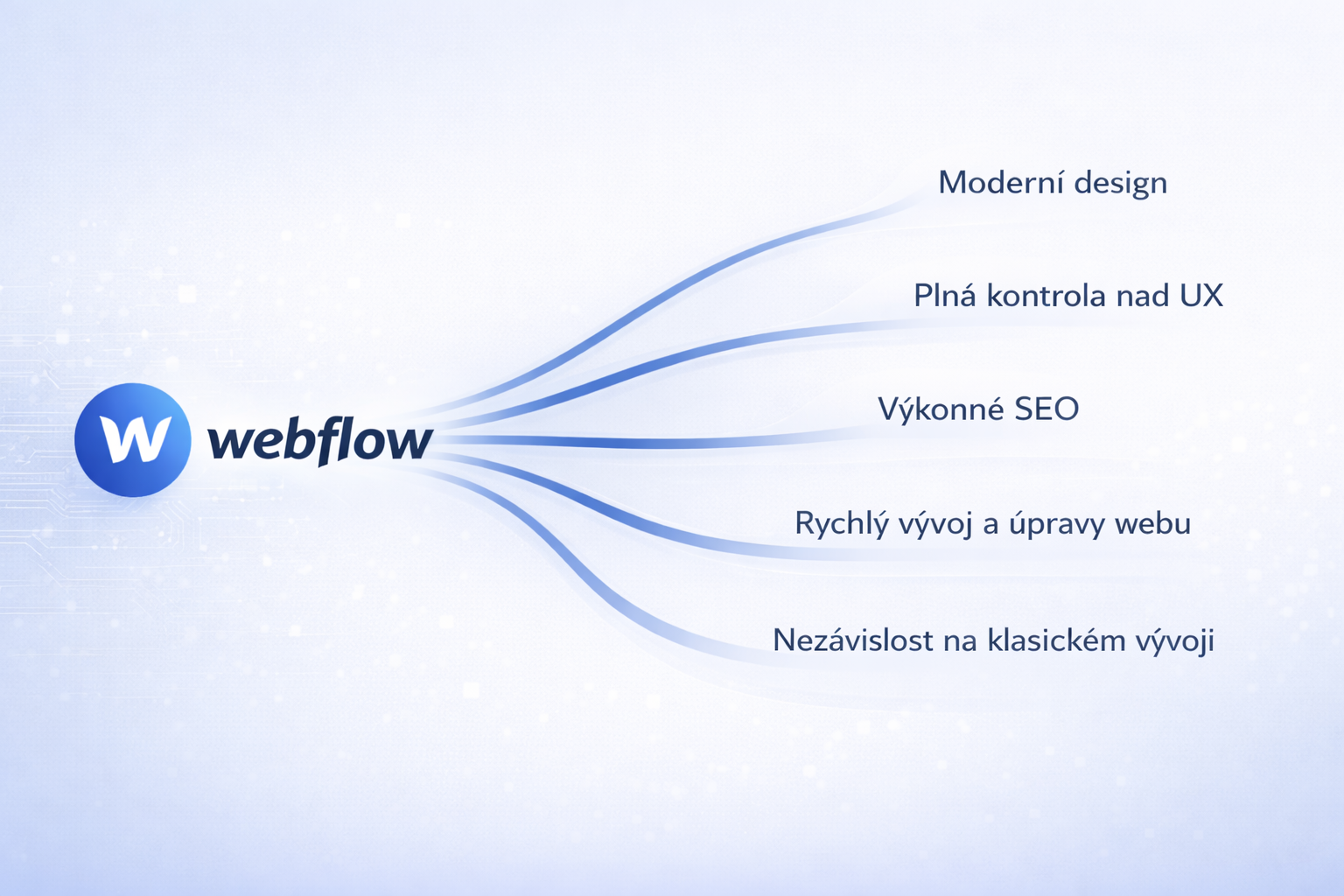 Webflow je ideální volba ve chvíli, kdy je pro vás klíčový vizuální dojem, rychlost a možnost mít web detailně pod kontrolou – bez omezení typických pro šablonová řešení.